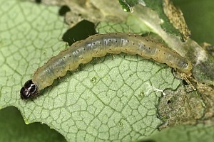 Die Raupe ist als Raupe auf Arten der Gattung Greiskraut (Kreuzkraut) an mehr oder weniger feuchten Standorten beschränkt. Schon Eppelsheim (1873: 93) meldete: "Die Raupe fand ich vom 20. Juli bis Mitte August in allen Grössen, minirend in den Blättern des auf dem Stilfser-Joche sehr häufig wachsenden Senecio doronicum und zwar in 6800—8000' Höhe. Die Mine beginnt an der Wurzel des Blattes stets auf der rechten Blattseite; sie ist anfangs lithocolletisartig oberseitig gefaltet und zieht sich nach der Spitze des Blattes hin, die ganze rechte Hälfte des Blattes einnehmend, oft aber minirt die Raupe, auch ohne dass die Blatthälfte ausgefressen wäre, verschiedene unregelmässige Flecke über die Mittelrippe hinüber nach der andern Hälfte des Blattes, wohin sie sich ohnehin begiebt, sobald das Chlorophyll der einen Hälfte verzehrt ist. War ausnahmsweise das Blatt zu klein oder treten äussere Störungen ein, so bildet sie in einem andern Blatte eine neue Mine, die aber dann immer in der Mitte des Blattes zur Seite der Mittelrippe beginnt. Stört man sie, so zieht sie sich nach der Wurzel des Blattes zurück, wo auch der Koth abgelagert wird. Verpuppung ausserhalb des Blattes. Die Lebensweise dieser Art ist so characteristisch und so total abweichend von der aller übrigen Depressarien, dass ich mich trotz der Aehnlichkeit der Falter nicht ohne Weiteres und namentlich nicht ohne genaue Kenntniss der ersten Stände der Saracenella entschliessen kann, die Zusammengehörigkeit beider Arten anzunehmen. In den Blüthen der Nahrungspflanze, wiewohl ich sie gründlich untersuchte, fand ich die Raupe nie".