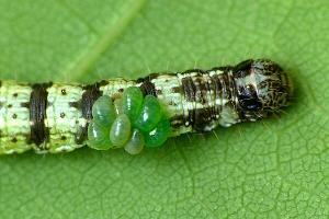 1-2: Erzwespenlarven (Chalcidoidea), Slowakei, Slowakischer Karst, Waldesrand neben Dorf Ardovo, ca. 365 m, Fund an Quercus spec. (Eiche), 16. Mai 2015, Raupe am 18. Mai 2015 [1] und 21. Mai 2015 [2] (leg., cult., det. Raupe & Foto: Andrej Makara], Vermutung Überfamilienzugehörigkeit des Parasiten Tina SchulzForum