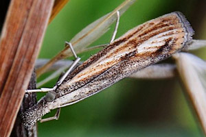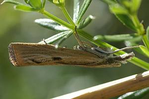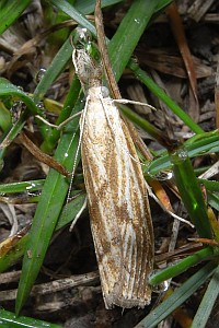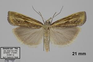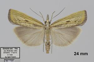 Die Art kann bei oberflächlicher Betrachtung mit Pediasia contaminella verwechselt werden. Diese besitzt aber keine glänzenden Flügelfransen, und ihre Grundfarbe ist nicht so gelb.