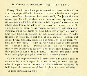 - Crambus argentistrigellus Ragonot, 1889 [Originalkombination]