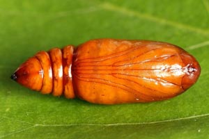 8-9: Ende des letzten Stadiums, dieselbe Raupe wie Bild 6-8, Daten sie Bild 6-8 (Fotos am 12. Mai 2009: Heidrun Melzer)