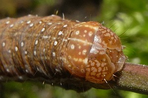 13: Deutschland, Thüringen, Umg. Jena-Göschwitz, Raupenfund an Schlehe 26. April 2009, e.l. 17. September 2009 (leg., cult., det. & Foto: Heidrun Melzer)