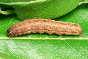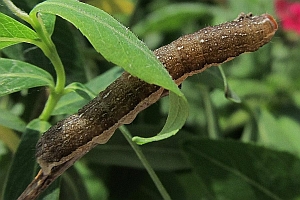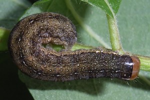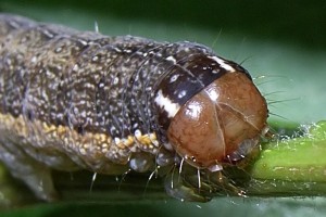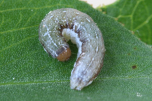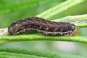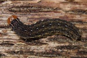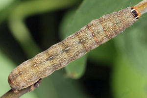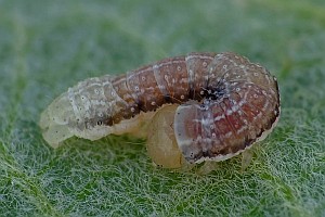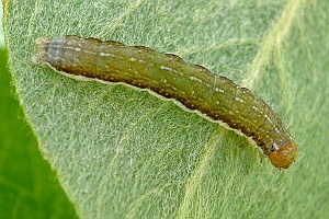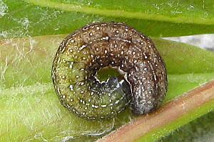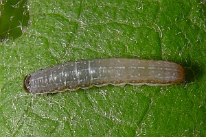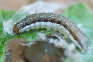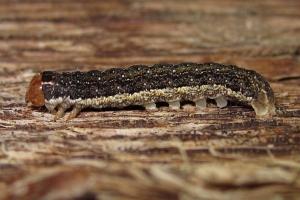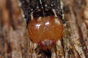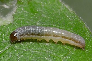 6: Jungraupe (6 mm), Dänemark, Jutland, Balle (südl. Grenaa), Kiesgrube, 20 m, in versponnenen Blättern von Weide (Salix spec.), 17. Mai 2014 (Foto: Kjeld Brem Sørensen), det. Heidrun MelzerForum