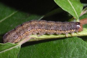 5: Jungraupe (12 mm), Dänemark, Jutland, Balle (südl. Grenaa), Kiesgrube, 20 m, in versponnenen Blättern von Weide (Salix spec.), 17. Mai 2014 (Foto: Kjeld Brem Sørensen), det. Stefan RateringForum