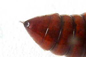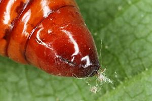 5: Kremaster, Deutschland, Nordrhein-Westfalen, Bochum-Wattenscheid, offene Siedlung, 120 m, leg. Raupe an Kirschzweigen 13. März 2023, verpuppt 28. Mai 2023 (leg., det., cult. & Foto: Reinhart Röhrig), conf. Hans MoserForum