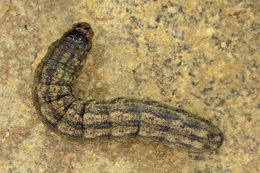 1: knapp unter der Bodenoberfläche in lockerer Erde befand sich eine Raupe in Häutungsruhe, Deutschland, Niedersachsen, Region Hannover, Sehnde, Weg am Mittellandkanal, 67 m, 16. September 2015 (cult. & fot.: Tina Schulz), det. durch GU des in der Puppenhülle abgestorbenen Falters Thomas Fähnrich & Tina Schulz