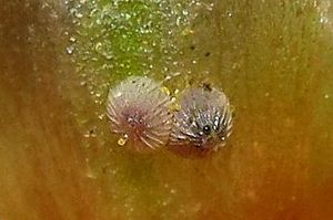10-11: vermutlich L2: Deutschland, Niedersachsen mit Bremen, Landkreis Schaumburg, Rodenberg, Garten, 90 m, Gelege an Armeria maritima (Strand-Grasnelke) 21. Juni 2023, Zuchtfotos 26. Juni 2023 (cult., det. durch Zucht & fot.: Tina Schulz)Forum