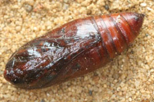 8: verpuppungsbereit: Deutschland, Baden-Württemberg, Freiburg, April 2007, Schlupf des Falters am 6. Mai 2007 (Foto: Waltraud Unterstab), det. Walter Schön, conf. Egbert Friedrich (anhand Falter)Forum