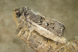 6: ♀, Marokko, Umg. Kentra, 4 km südlich Mehdia, Plage nord, ♀ leg: Dirk Stadie am 17. Oktober 2010 durch Lichtfang, e.o. 24. April 2011 (Foto: Egbert Friedrich), cult. Heinz Wolter