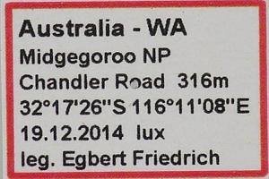 1: ♀, Australia, New South Wales, Darlington Point near Griffith, riverside campground, 10. January 2010 (det. & fot.: Mario Finkel), conf. Egbert FriedrichForum