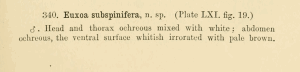 Die Art wurde zunächst als Agrotis sardzeana aus Europa gemeldet und im Lepiforum bis 18. Februar 2021 auch unter diesem Namen geführt. Grundy & Yela (2020) machen aber auf eine längst erfolgte Synonymisierung aufmerksam: "Recently (De Prins & De Prins, 2013; Aulombard et al., 2020) it has been noted that sardzeana is a junior synonym for Agrotis subspinifera (Hampson, 1903), as demonstrated by Kapur & Arora (1971) in a largely overlooked publication, even by Poole(1989)." Bei Kapur & Arora (1971: 110-112) findet sich zwar eine nähere Beschreibung (inkl. Genitalzeichnung) von subspinifera und die Neukombination mit Agrotis, aber kein einziges Synonym. Als Verbreitungsgebiet wird neben dem Punjab nur noch ein neuerer Fund in Rajasthan angeführt, also nicht der locus typicus von A. sardzeana; die Synonymisierung erfolgte also erst jüngst. Auf [afromoths] heißt es zu sardzeana: "A junior subjective synonym of Euxoa subspinifera Hampson, 1903; synonymized by A. Legrain (24.ix.2017)."