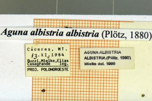 - Aguna albistria leucogramma (Mabille, 1888) [Unterart nach funet.fi]