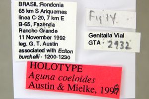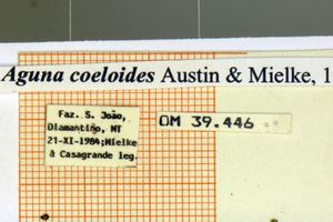 - Erstbeschreibung: Austin, G. T. & O. H. H. Mielke (1998): Hesperiidae of Rondônia, Brazil: Aguna Williams (Pyrginae), with a partial revision and descriptions of new species from Panama, Ecuador, and Brazil. — Revista brasileira de Zoologia 14 (4): 889-965. [PDF auf scielo.br]