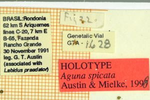 - Erstbeschreibung: Austin, G. T. & O. H. H. Mielke (1998): Hesperiidae of Rondônia, Brazil: Aguna Williams (Pyrginae), with a partial revision and descriptions of new species from Panama, Ecuador, and Brazil. — Revista brasileira de Zoologia 14 (4): 889-965. [PDF auf scielo.br]