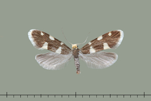 Die Falter sind in der Ausbildung der weissen Flecken sehr veränderlich. Die folgenden vier Aufnahmen von Präparaten geben die Variationsbreite der Art am unten beschriebenen Fundort wieder. (Rudolf Bryner)