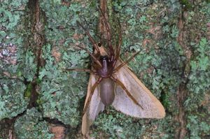 Weibchen: Unter den Geometriden-♀♀ mit zurückgebildeten Flügeln ist die Gattung Alsophila leicht ansprechbar, wenn man drei Merkmale beachtet: Das völlige Fehlen von Flügeln, ein breiter Haarbusch an der Hinterleibsspitze und eine Sitzhaltung, die von der Seite betrachtet an einen Seehund erinnert, der Kopf und Schwanzflosse hochstreckt. Die Imagines von A. aceraria sind im Spätherbst zu finden; A. aescularia schlüpft erst im Spätwinter. (Autor: Jürgen Rodeland)