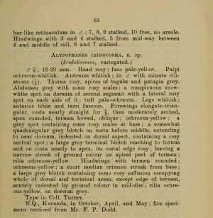 - Original description: Turner, A. J. (1908): New Australian Lepidoptera of the Families Noctuidæ and Pyralidæ. — Transactions and Proceedings and Report of the Royal Society of South Australia 32: 55-109. Adelaide (W. C. Rigby).