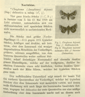 - Cleophana (Amephana) dejeanii dalmatica Rebel, 1919 [Originalkombination]