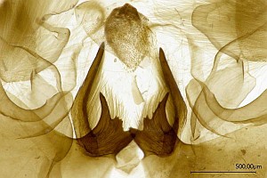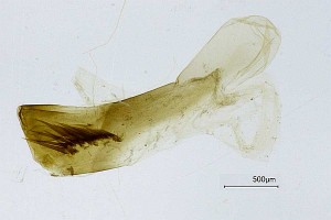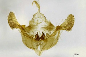 1-4: ♂ (1 = Valvenkomplex, 2 = Detail rechte Valve, 3 = Detail Vinculum, 4 = Aedoeagus): Estland, Jõekääru, 5 km NE Pärnu, Erschließungsbrache, 58.422° N, 24.458° E, 10 m, 2. August 2013, am Licht (Präparation & Fotos: Hartmuth Strutzberg)Forum