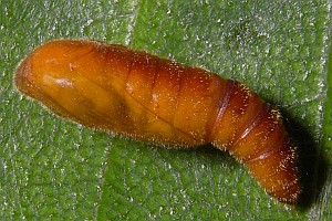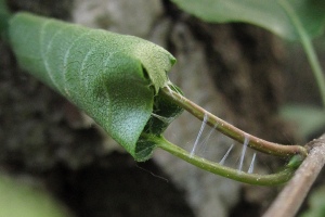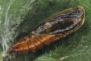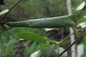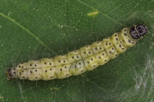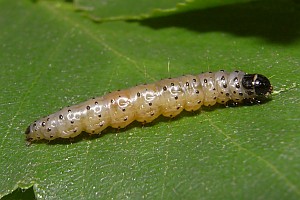 Dier Raupen werden häufig an Birken gefunden, womit meist die Hänge-Birke gemeint sein dürfte, die auch öfters konkret benannt wird. Andere Birken-Arten dürften aber ebenfalls genutzt werden. Doets (1941: 354) hatte zum gerade neu beschriebenen Synonym A. betulinella mitgeteilt: "Betulinella is very common about Hilversum and without doubt everywhere in Holland where big birches grow. The larva lives in rolled up leaves of Betula alba L. I found them in May and June mostly on big trees standing alone or on the border of a wood, from a half till two meters above the ground. At first it rolls up the leaf at the sides, seldom at the top and after having completed the work, both ends are closed in the manner in which a grocer folds a paper-bag. Sometimes one or two leaves are added to this first roll. The larva of the Tortricide Epiblema solandriana L., which lives in the same way on birches, is easy to distinguish from betulinella as it misses the brownish oval spot on the last segment. The young betulinella-larva is greyish-green, a little nacreous, with black head, spots, true legs and plate on the second segment, while the oval spot on the last segment is brownish. The full-grown larva, however, is yellowish-green. Within this roll it lives amidst its excrements and the pupation takes place in this habitation or out of it between two leaves. The biology of populella is exactly the same as that of betulinella, only, as the name indicates already, it lives on poplars."