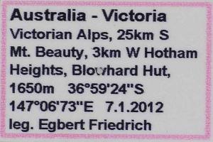 1: Australia, Victoria, Creswick, 430 m, at light, 8. February 2018 (det. & Studiofoto: Wolfgang Hackbusch), conf. Egbert FriedrichForum