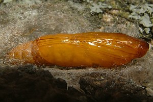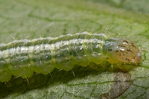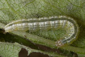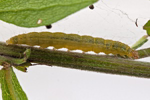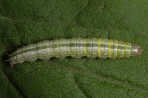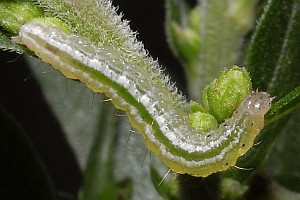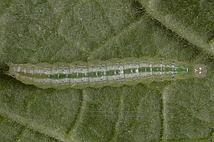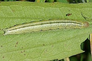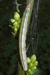 Treitschke (1835: 23) berichtet, Herrn Fischer von Röslerstamm zitierend zur Raupe: ""Sie lebt im September auf der Goldruthe (Solidago virgaurea), und ist weiß, gelbgrün gemischt. Die Rücken- aber, welche von der Grundfarbe scharf begränzt wird, bildet einen breiten hellgrünen Streif."
