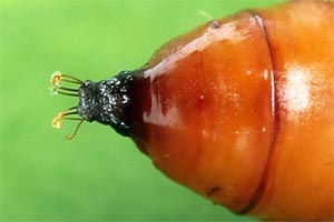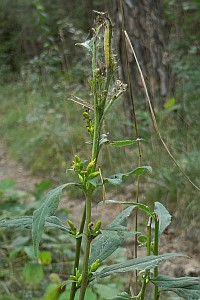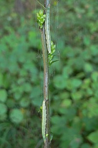 Überraschend kam die Angabe von K. Schwabe über einen Raupenfund in Brandenburg (Stecherschleuse bei Eberswalde) an Blättern von Solidago canadensis; da die Raupenbestimmung durch Zucht zum Falter abgesichert ist (siehe Falterfoto oben), muss diese Beobachtung akzeptiert werden. Da es aber in Mitteleuropa massenhaft Bestände von Solidago canadensis und Solidago gigantea ohne dass dort A. terrealis vorkommt, werden diese neophytischen Solidago-Arten sicher nur ausnahmsweise mitgenutzt. Weitere Beobachtungen wären hier sehr erwünscht.