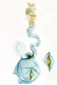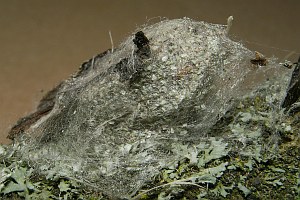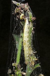 Schütze (1931) führt die Art ebenfalls unter Solidago virgaurea und weiß dazu: "In Gespinstschläuchen an Stängeln, von wo aus sie die Blätter befrisst. Verwandlung im Frühjahr (Stange), nach Rössler frei an der Blattunterseite, nach Mühl. an der Blüte, nach Sorhagen auch an Aster amellus und Aster bellidiastrum Mittel- und Nordeuropa." Die letzteren Angaben erscheinen sehr fraglich und beruhen wahrscheinlich auf Verwechslung.