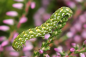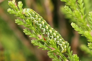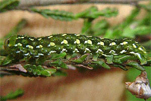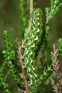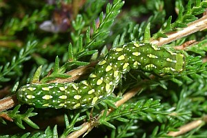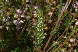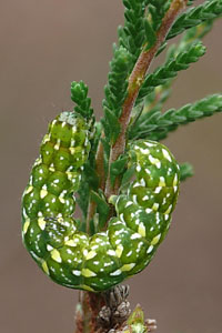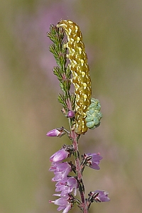 2-3: Deutschland, Sachsen, Dübener Heide, Gruna bei Eilenburg, Raupenfund am 28. Juni 2007 an Heidekraut (Calluna vulgaris), e.l. 20. Juli 2007 (leg., cult., det. & Fotos am 9. Juli 2007: Heidrun Melzer)
