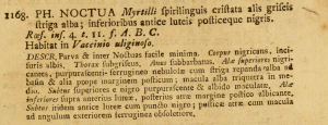 - Erstbeschreibung: Linnaeus, C. ([1760]-1761): FAUNA SVECICA Sistens Animalia SVECIÆ Regni: MAMMALIA, AVES, AMPHIBIA, PISCES, INSECTA, VERMES. Distributa Per CLASSES & ORDINES, GENERA & SPECIES, Cum Differentiis Specierum, Synonymis Auctorum, Nominibus Incolarum, Locis Natalium, Descriptionibus Insectorum. Editio Altera, Auctior: Frontispiz, [i-xlviii], 1-578, pl. I-II. STOCKHOLMIÆ (LAURENTII SALVII).