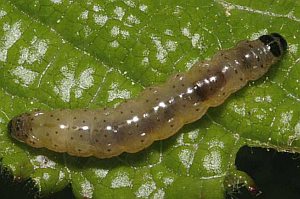 Krone (1905: 97-98) beschreibt die Raupe detailliert und berichtet zur Lebensweise: "Die Raupe fand ich Mitte Mai auf den Kalkgebirgen bei Wien in den Herztrieben der Melissa officinalis, in denen sie sich in eine lichtbraune Puppe verwandelt. Der zierlich gezeichnete Falter erscheint Mitte Juni." Ob Krone hier wirklich die Echte Melisse meinte oder nicht doch das Immenblatt, lässt sich wohl nicht mehr klären. Letztere Pflanze ist z.B. durch den oben gezeigten Raupenfund von R. Bryner aus der Schweiz als Raupennahrung der Art gesichert.