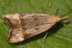 1: ♀, Schweiz, Bern, Biel, 550 m, 16. April 2012, Raupe an Melittis melissophyllum, e.l. 4. Mai 2012 (leg. cult., det. & Foto: Rudolf Bryner)