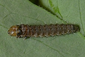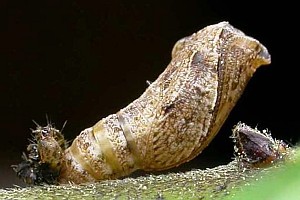 3: Deutschland, Baden-Württemberg, Kaiserstuhl, Bötzingen, Raupenfund am 10. Mai 2008 an Seidelbast, e.l. 27. Mai 2008 (leg., cult. & Foto: Gabi Krumm, Blaustich redaktionell verringert), det. Peter LichtmanneckerForum