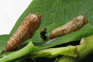 5-7: Deutschland, Thüringen, Tautenburger Forst bei Jena, 270 m, Raupen an Echtem Seidelbast (Daphne mezereum), verpuppt am 12. Mai 2012 (leg., cult., det. & Fotos: Helga Schöps)Forum