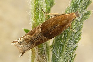 Schütze (1931) fasst zusammen: "In zwei Generationen nach Sorhagen polyphag an niederen Pflanzen und Sträuchern in einem umgeschlagenen und versponnenen Gipfelblatt. Sanguisorba, Thymus, Teucrium scorodonia, Potentilla argentea, Potentilla opaca, Potentilla cinerea, Potentilla verna, Fragaria."