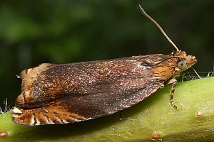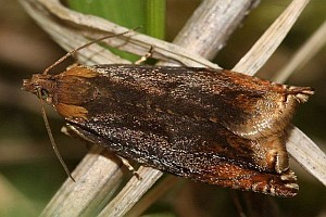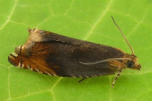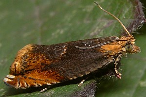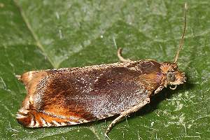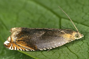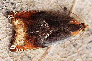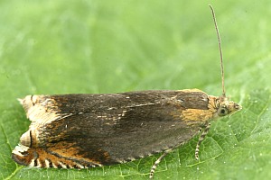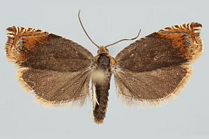 1: ♀, Schweiz, Waadt, Cudrefin, 430 m, Auenwald, leg. 2. September 2006 Raupen in Blattgespinsten an Ulmus minor, e.l. 10. Oktober 2006 (Studiofoto: Rudolf Bryner), cult. & det. Rudolf BrynerForum