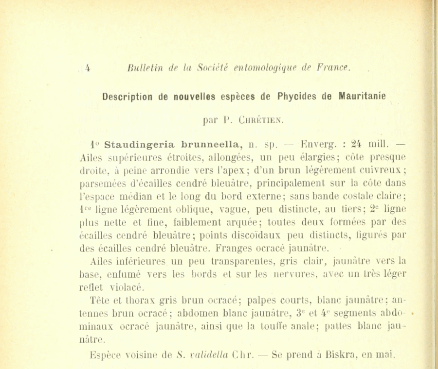 - Staudingeria brunneella Chrétien, 1911 [Originalkombination]
