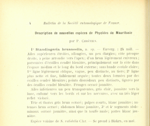 - Erstbeschreibung: Chrétien, P. (1911): Description de nouvelles espèces de Phycides de Mauritanie. — Bulletin de la Société entomologique de France 1911 (1): [54-55] [p. 54 ist fälschlich als "4" paginiert; p. 55 ist ohne Paginierung].