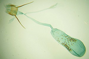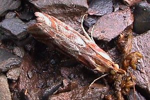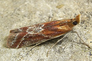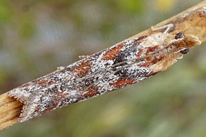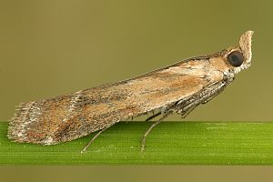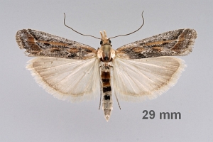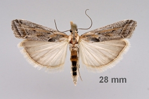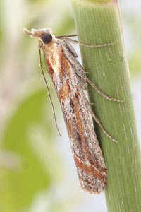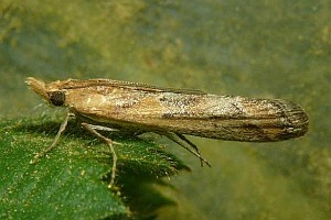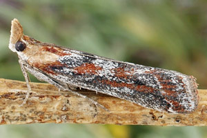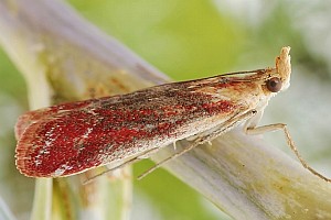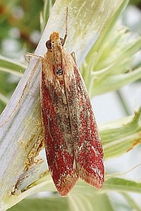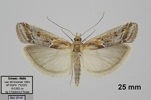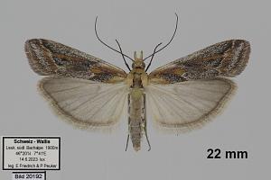 Bidzilya et al. (2019) fassen den Kenntnisstand zusammen: "The larvae feed between spun basal leaves on Sedum atre [sic! gemeint ist Sedum acre] (L.) and Globularia sp. (Roesler 1973: 321, cit. after Disqué 1906: 35) as well as on Artemisia campestris (L.) and Astragalus baionnensis Lois. (Leraut 2014; Sinev 1986: 326). The description of the larva is provided by Roesler (1973: 319). In Ukraine adults have been registered from mid May to mid June and then from the end of July to mid September in steppe and meadow-steppe habitats." Was die Raupen nun tatsächlich fressen, war damit noch nicht geklärt, nicht einmal ob sie mono-, oligo- oder polyphag sind.