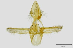 1-4: ♂, Genital mit achtem Sklerit, Valven, Phallus, achtes Sklerit, Spanien, Kanarische Inseln, Fuerteventura, Parque Holandés, Barranco del Cabadero, 23 m, 28°36' N, 13°50' W, 23. Februar 2020, am Licht (präp. & fot.: Hartmuth Strutzberg), det.: Egbert Friedrich & Andreas Werno, Referenz Roesler (1973)Forum