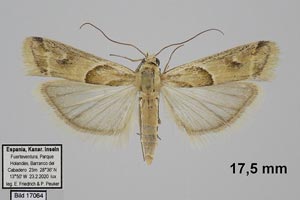 3: ♂, Spanien, Kanararische Inseln, Fuerteventura, Parque Holandés, Barranco del Cabadero, 23 m, 28°36' N, 13°50' W, 23. Februar 2020, am Licht (leg. & fot.: Egbert Friedrich & Petra Peuker), det.: Egbert Friedrich & Andreas Werno, Referenz Roesler (1973)Forum