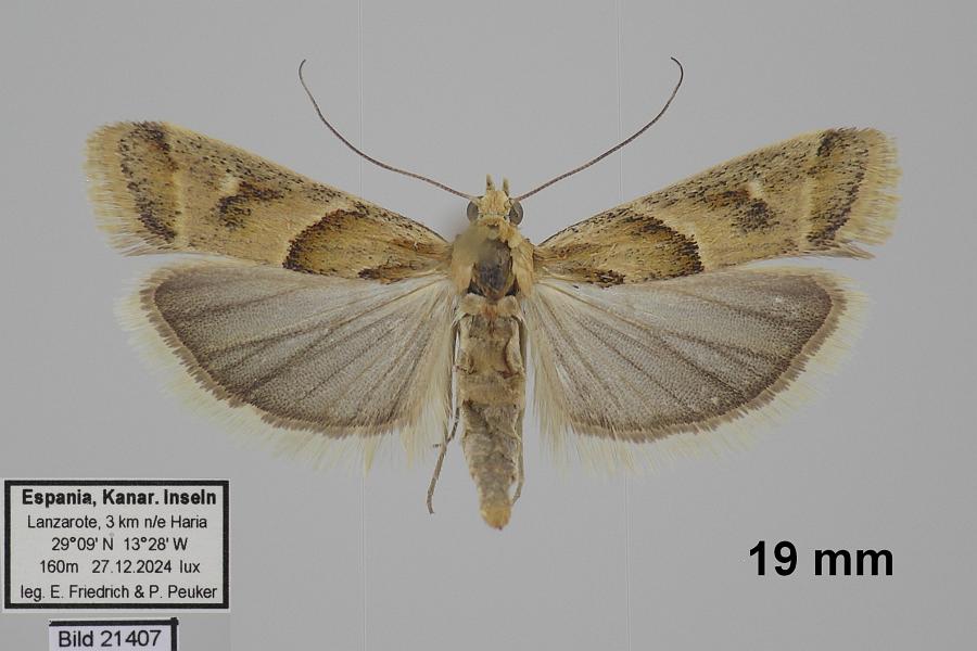 1: ♀, Spanien, Kanarische Inseln, Fuerteventura, Parque Holandés, Barranco del Cabadero, 62 m, 28°36'30'' N, 13°50'27'' W, 24. Februar 2020, am Licht (leg. & fot.: Egbert Friedrich & Petra Peuker), det. Egbert Friedrich & Andreas WernoForum