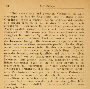 - Erstbeschreibung: Caradja, A. (1910): Beitrag zur Kenntnis über die geographische Verbreitung der Pyraliden des europäischen Faunengebietes nebst Beschreibung einiger neuer Formen. — Deutsche Entomologische Zeitschrift Iris 24 (6/7): 105-147. [PDF auf zobodat.at]