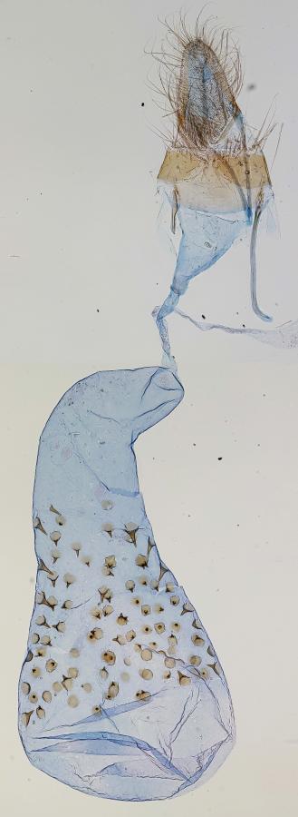 Paratypes. 1♂, same data as for holotype but 6.viii.1986 (gen. slide 36/19, O. Bidzilya). 1♀, same data as for holotype but 13.vii.1986 (gen. slide 34/19, O. Bidzilya). 1♂, Crimea, Uzun-Syrt, SW slopes, 15.vii.2014, evening netting (Yu. Budashkin) (gen. slide 32/19, O. Bidzilya) (all ZMKU). 1♀, Crimea, Pheodosia distr., Podgornoe vill 2.5 km WSW, Uzun-Syrt, 150 m, 23.viii.2011 (V. Savchuk & N. Kaigorodova) (genital in glycerol vial) (VS). 1♂, Ukraine, Krim, Umgebung Fruktove, 8.viii.2007, LF (genitalia in glycerol vial) (FG)."