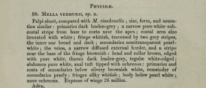 - Erstbeschreibung: Butler, A. G. (1884): On a Collection of Lepidoptera made my Major J. W. Yerbury at or near Aden. — Proceedings of the scientific meetings of the Zoological Society of London for the Year 1884: 478-503, pl. XLVI.