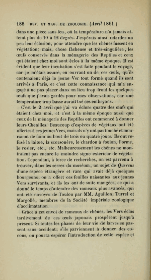 - Erstbeschreibung: Guérin-Méneville (1861): Société impériale et centrale d'agriculture de France. Séance du 24 avril 1861. — Revue et magasin de zoologie pure et appliquée. 2e série 13: 187-192, pl. 13. Paris.