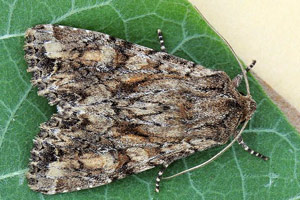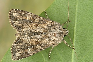 - Apamea aquila: dunkle Rückenfleckung, Kopf schwarz