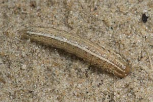- Apamea sordens: Subdorsalen auf dem Nackenschild schmaler als Dorsale, Dorsale auf Abdominalsegmenten 4 und 5 verbreitert, Seitenlinie ventral nicht scharf abgegrenzt (lateral wischi-waschi gezeichnet), hält strenge Winterruhe