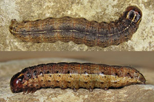 - Apamea sordens: Subdorsalen auf dem Nackenschild schmaler als Dorsale, Dorsale auf Abdominalsegmenten 4 und 5 verbreitert, Seitenlinie ventral nicht scharf abgegrenzt (lateral wischi-waschi gezeichnet), hält strenge Winterruhe