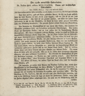 - Esper, J. C. [1796-1805]: Der europäischen Schmetterlinge Vierten Theils zweiter Band erster Abschnitt welcher die Eulenphalenen von Tom. IV Tab. CXXVI. Noct. 47. — Tom. IV. Tab. CLXXVIII. Noct. 99. und die Bogen Bbb bis Uuu enthält. 373-698, pl. CLXXXIV-CXCVIII.
